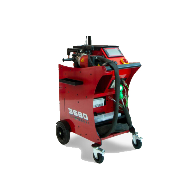Briefly, the main features of this welding equipment can be summed up as follows: automatic identification of the connected welding gun; welding gun with integrated transformer enabling the connection to the welding system through an industrial socket and a set of quick fittings, thus allowing to avoid spanners, tools or screws for its replacement; welding gun main components i.e. transformer, arms, electrodes fully cooled by a closed loop cooling system, mounted on the cart of the system itself.